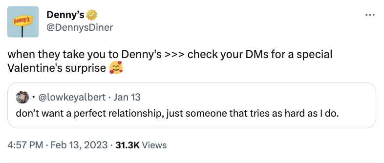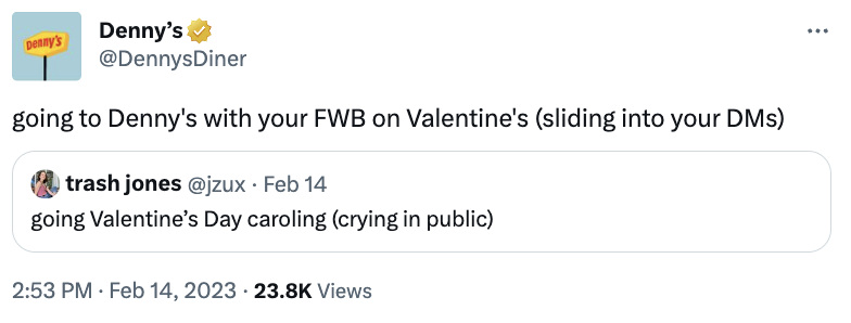 Denny’s wanted to stand out in a sea of roses and chocolate on Valentine’s Day. So we decided to zig when everyone else zagged, and celebrate a more untraditional relationship.